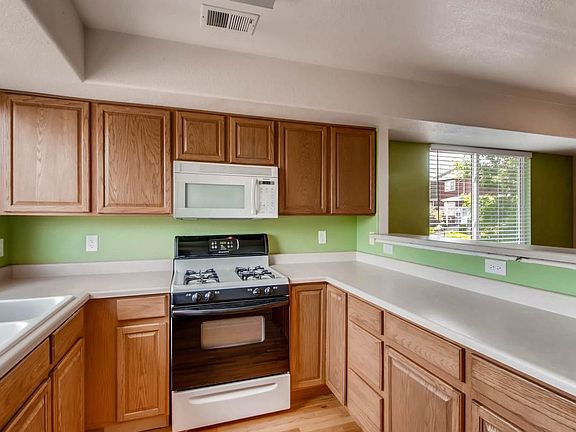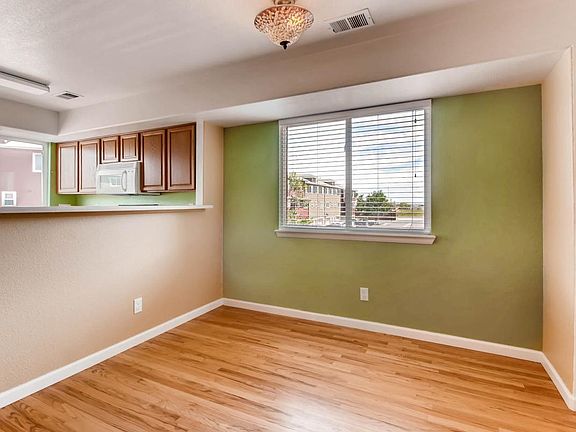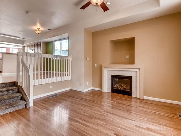 End unit in popular Jasmine Estates. Hardwood floors entire main level and custom paint. Open floor plan with lots of natural light. Cozy living room with fire place open to the dining room and kitchen. Master suite with 2 additional bedrooms upstairs. Fenced private patio. Attached garage. Pool community. W/D hookups. Adams 12 school district. Entire complex recently painted.