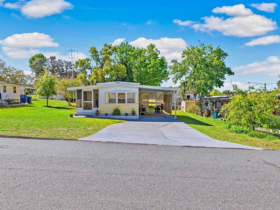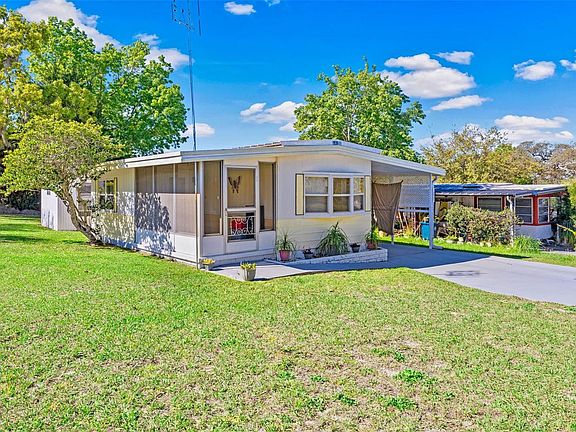 Come Enjoy the Florida Lifestyle in this Charming & Affordable Furnished 2 Bedroom 1.5 Bath Well cared for Home . Located in Desirable High Point 55+ Golf Community. Light and Bright open floor plan . Split plan. Eat-In Kitchen open to family room. Laminate wood flooring . Most windows in the home replaced last year with double pane low E windows . Laundry Room / Storage Room . AC replaced in 2017. Metal Roof Recoated & Sealed in 2023 .Double Driveway easily fits 4 cars . Screened in Porch . Carport . You Own your Land . Low HOA fees . Active Community with Community center , Pool, Pickel Ball, Tennis , Shuffle Board and Golf . Close to shopping ,medical ,entertainment & Beaches . Minutes from Suncoast Parkway for easy commute to all Tampa Bay areas & Orlando Amusement Parks . Don't Miss Out !!!
