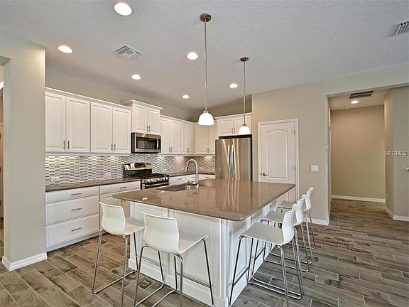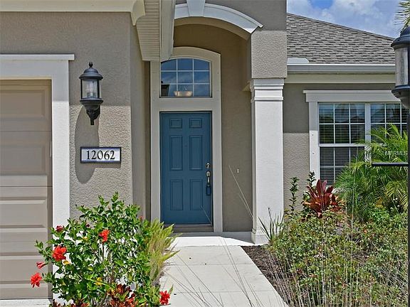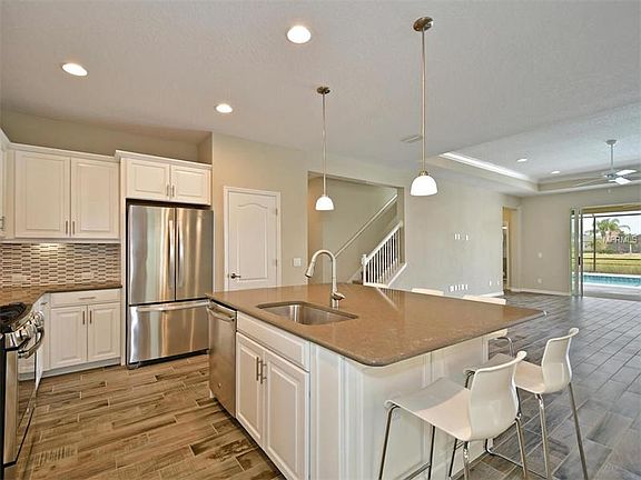This 2015 built Lakewood Ranch home is a must see. This home is situated on a lake so you can enjoy the views with no backyard neighbor. The minute you enter this home you will appreciate the porcelain tile that continues through out the main living area. This Neal Communities Clear Day floor plan has upgrades galore. Some of the upgrades include 2 high efficiency A/C units, in wall pest system, coffer ceilings in great room and master bedroom, lanai is wired for speakers, 50 gal hot water heater, and upgraded tile in all 4 bathrooms. The gourmet kitchen includes a custom tile backsplash, stainless steel appliances, wood cabinets, quartz counter tops, walk in pantry, and an island that comfortably seats 5 guests. The master bedroom features his and hers walk in closets. This home has the capability of a second master suite as the 5th bedroom includes a large walk-in closet and ensuite bathroom. This home includes a pool with water features. The pool is gas heated for year round enjoyment. Even the garage is upgraded with a utility sink, epoxy floor, upgraded belt driven door openers, and a ceiling fan in the garage work corner. The Central Park community offers plenty of amenities including 2 dog parks, nature trails, tennis courts, playground, and a splash park.