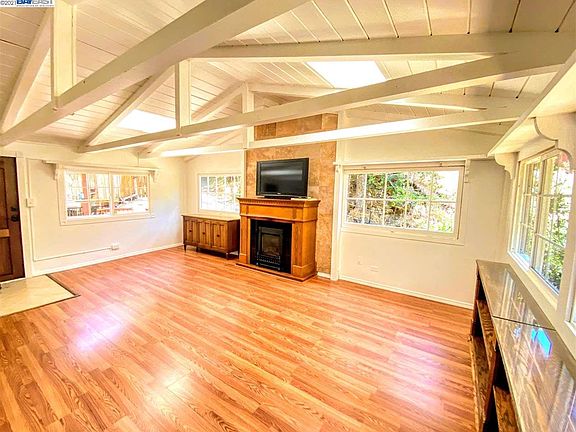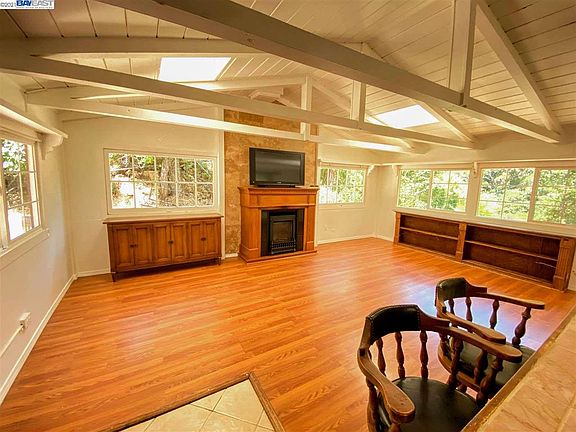 Take a vacation every day in this cozy, charming redwood log cabin nestled in Kilkare Woods near Pleasanton. Feels like being in the mountains but minutes away from I-680 freeway. Enjoy beautiful mountain views and wildlife from expansive deck. Award winning Sunol Glen elementary and Foothill high schools. Updated interior- stone tile kitchen counters with knotty pine cabinets and breakfast bar. Laminated floors in living room, double pane windows, exposed beam ceiling with two skylights for plenty of natural light. Gas burning fireplace heater. Personal laundry room. Tandem driveway that wraps all the way around to Glenora Way. Hop, skip and a jump to clubhouse, ball field, pool, playground & hiking trails to Sunol Regional Park. Pleasanton city water, PG&E gas and electric, comcast/xfinity cable & internet.