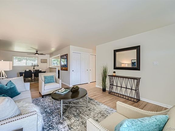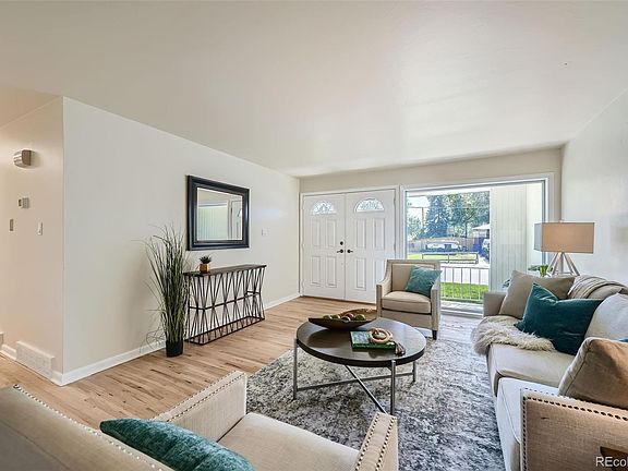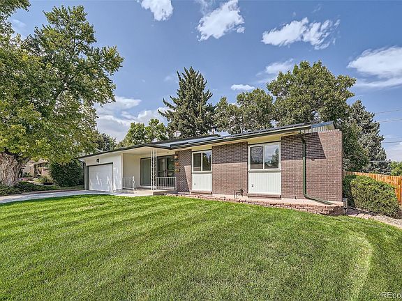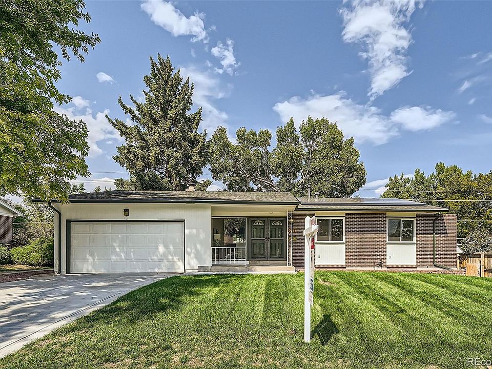 Cool mid-century modern home in the quiet Allendale neighborhood in the heart of Arvada where curb appeal and pride of ownership is showcased all around. This home is ready to move right in and just hang your pictures. There is fresh paint throughout, new carpet, freshly refinished oak floors and an open floor plan flooded with natural light. The furnace and water heater are just 5 years old. Upon entry, the living room overlooks the front porch and well-manicured front lawn. Just beyond the living room, the dining space sits between the kitchen and family room making this home a great place for family dinners or bigger parties. The kitchen features built-in appliances, clean white cabinetry and counter space. The family room with a cozy fireplace is a great place to curl up with a good book or watch a movie on chilly Colorado nights. The primary bedroom has a private 3/4 bath ensuite while two additional bedrooms share access to a full hallway bath. The attached 2-car garage includes ample cabinet storage and a built-in workbench. Extra paved parking on the West side of the home is perfect for an RV or boat. The large back yard is surrounded by a privacy fence and offers a shady patio for summer barbecues and a well manicured lawn great for kids or pets to play or a game of Bocce Ball. There are mature trees plus a shed for the yard tools and toys. The large and walkable basement with 6'6" head height is accessible via an entrance on the East side of the home. It provides ample extra storage and easy access to the furnace and plumbing for maintenance. Enjoy the benefit of the Solar System which will afford year round savings! Good neighborhood schools are in close proximity along with some of the town's favorite parks - Ralston Central Park & Splashpad + Stenger Sports Complex + Bridgeside Park to name a few. Olde Town Arvada is 3 miles east and offers a fun night out with plenty of retail shopping, restaurants, and breweries.