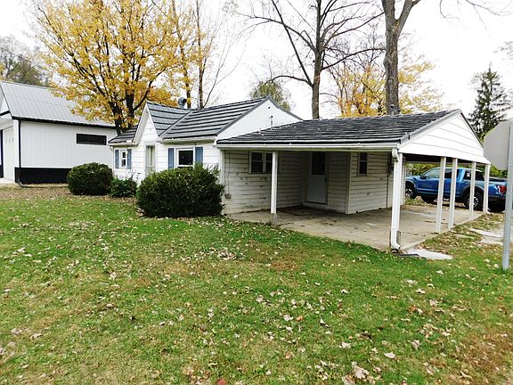 Fantastic Opportunity for a Winter Project to enjoy all the Lake Living activities next Spring/Summer! The owner has decided to step down from being a landlord to enjoy more personal time with his family and pass the torch to a new owner. Living Room offers rich knotty pine walls as well as the vaulted kitchen ceiling. Master bedroom with walk in closet. Other bedroom has vaulted tray ceiling with knotty pine shelving under plywood inserts. Carport doubles as massive covered patio for awesome entertaining, cooking out or just lounging. Two storage sheds, fire ring and additional off street parking. Just a few steps from the shores of Lake Loramie, or take a leisurely stroll to the boat landing to fish. The ''Old World'' shake style metal roof gives this bungalow a unique appeal. This little home is yearning for someone with a love of renovation to bring their personal ideas and vision to transform it into the Dollhouse it could be. Would be a perfect candidate for a year round or vacation getaway, rental or Airbnb.