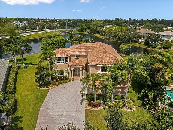 You're gonna fall in love with this two-story home with 6 beds, plus an office, 4 1/2 baths at Grand Isle in Wyndham Lakes. The split floor plan makes this home sophisticated and functional. Kitchen with top-of-the-line appliances, quartz counter top, very bright with an amazing view. Bedroom downstairs has a private entrance that an older teen or the in-laws won't complain about!! Master bed upstairs. House features several high-end upgrades. Backyard will take your breath away, with a peaceful lake, a giant mango tree and a relaxing pool. 2011 roof in perfect condition, new A/C units and accordion shutters. 3 car garage, the driveway has space for 6/8 more cars. Close to A schools, restaurants and shops. Easy access to Sawgrass Expy. It's the house of your dreams. Your search ends here!