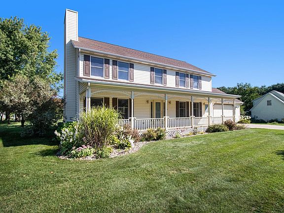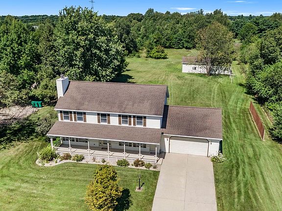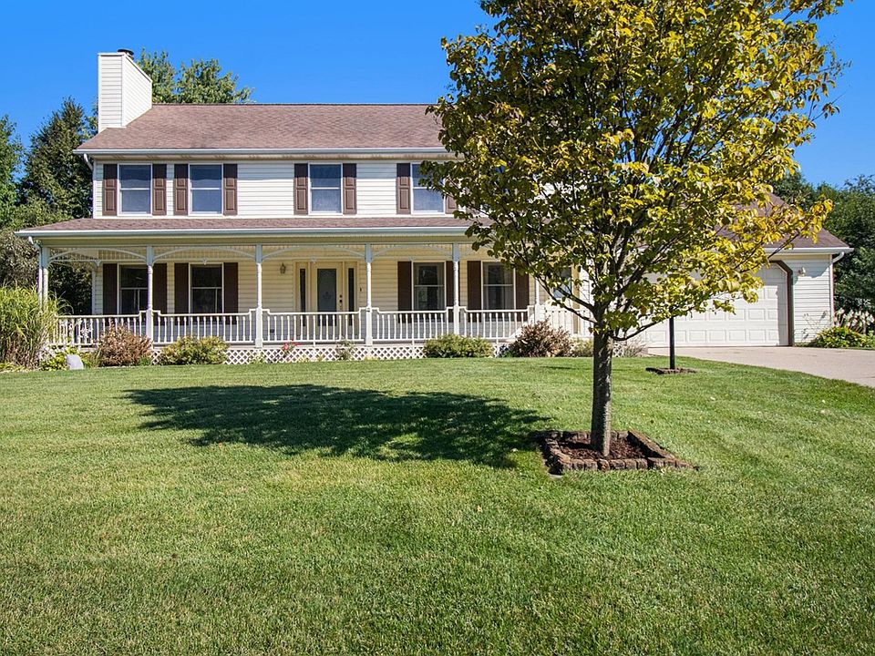 MULTIPLE OFFERS - HIGHEST AND BEST DUE 9-8 3:00PM --- 2.4 Acres in New Granger Trails! Incredible piece of property that is partially wooded with walking trails, a large 42'x28 barn with electricity and 2 overhead garage doors, and storage shed. Imagine camping, gardening, and exploring in your own backyard! Adjacent to the Edwardsburg snow mobile trail for winter fun! This beautiful traditional home has the most gracious large front porch leading you to the 2-story foyer entry. Show stopping family room/dining room combo with gleaming oak floors, antique wood-burning fireplace and French doors, and a bow window will become the gathering hub for any get together! Formal living room, main floor laundry, half bath, and eat-in kitchen with brand new appliances, pantry, and breakfast bar. All 4 bedrooms are upstairs for convenience. Large master has a nice walk-in closet and spacious bath. 3 additional bedrooms share a full bath. Furnace and AC to be replaced prior to close. Clean basement has a finished family room with a wet bar, and a large storage area. Lawn has irrigation system.