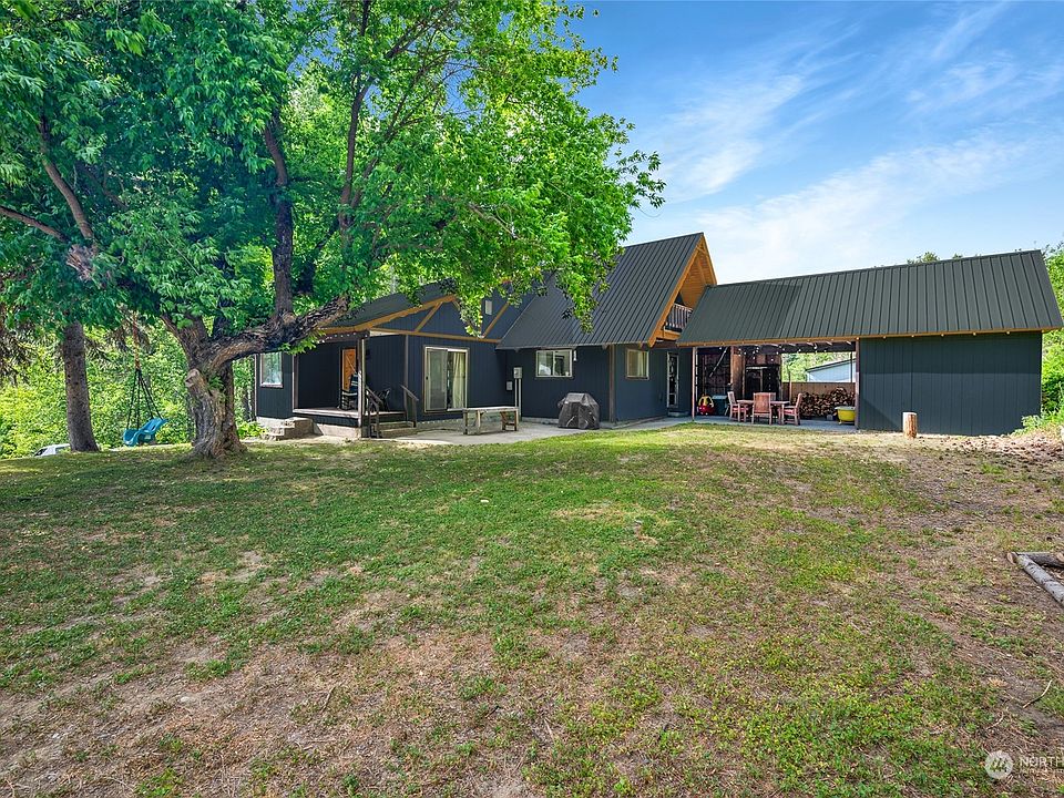 This spacious home, with a two-car garage and a detached office studio has been almost completely renovated. New 4 bedroom septic system installed in 2022, new interior paint and flooring, electrical panel, hot water heater, EV charger installed in garage, brand new standing seam metal roof and exterior paint in 2024. A little cosmetic updating left for you to bring the style of this home fully up to date! Daylight basement has potential for shower/kitchenette to make it a separate unit. Fenced garden planted and ready for you to harvest. Minutes away from mountain biking up Freund Canyon. All this on 1 acre just over 2 miles from downtown Leavenworth!