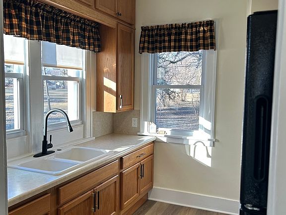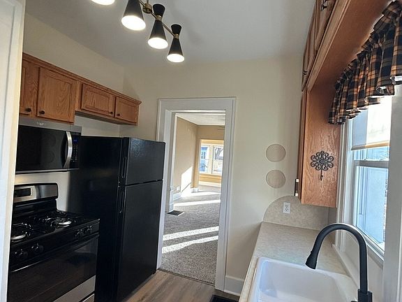 Remodeled home; Siding 2005, Roof 2018, new gas stove, microwave, refrigerator (not warranted), GFA 1999, newer windows, painted basement, new interior water lines, new electric wiring, new flooring throughout, new bathroom, remodeled kitchen. Windows replaced including basement. Maytag washer and electric dryer not warranted (also has a gas hookup). Two car driveway with curved sidewalk to corrugated front lighted deck. Back patio. Park like feel in backyard. Peppered with perennials through the yard.
