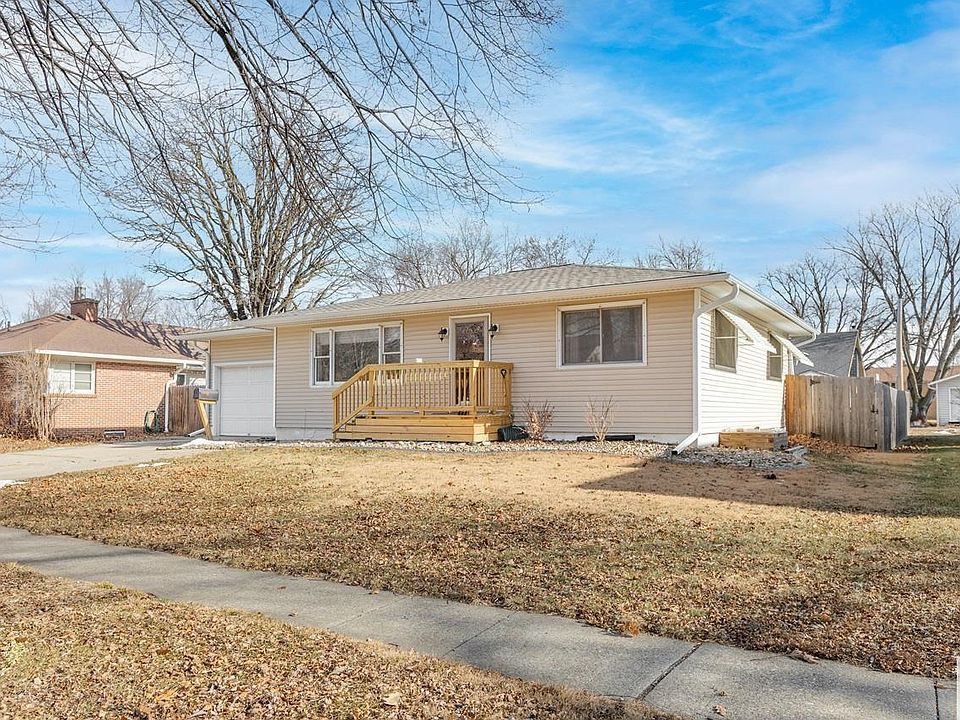 This pretty ranch home has many thoughtful and delightful surprises! It has a one car attached garage, and a two car detached garage with entry from the back of the property. Entering the front door into the large, light-filled living room with a coat closet, an electric fireplace, a pass through to the kitchen and a large archway to the kitchen, which opens up the space. The eat in kitchen has textured laminate flooring, stainless steel appliances and dark wood cupboards. Down the hallway from the living room is two bedrooms and a full bath. In the kitchen through a single French door is the back foyer. Located here is the door to the garage, the stairway to the basement and the back door leading to the covered deck and a fenced in backyard. In the basement is the laundry, a utilities/storage room, a second large living area, the master bedroom with egress window, en-suite bathroom, and walk-in closet. The basement carries out the wood tones with wood trim and barn doors. Now is the right time, and this is the right home for you!