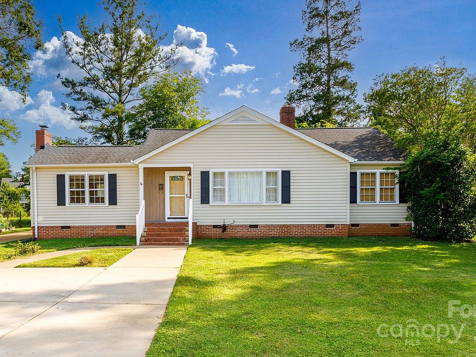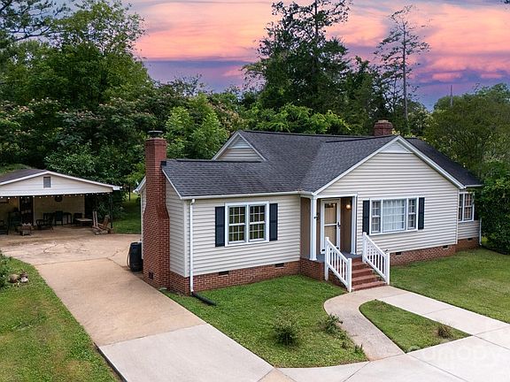 Location, location, location! This home is tucked into one of Rock Hill's most desired neighborhoods, Fewell Estates. Come and live across from 10 acres of Fewell Park that is pet friendly with many opportunities for daily outdoor activities. The park offers trails, a pavilion, volleyball net, a playground and plenty of green space. This well-loved home offers three bedrooms, a spacious kitchen with quartz countertops and a dining room, original hardwood floors, lots of new hardware and lighting throughout. A large office with beautiful wood paneled walls and built in shelves/cabinets and has it's own cozy wood burning fireplace. The living room has built in shelves/cabinets and a cast iron craft pat pend wood burning stove. HVAC replaced in 2022. New garbage disposal installed this week. Large lot has invisible fencing. Enjoy a large private patio space out back and the carport has an oversized utility room. Come home and enjoy this serenity and the convenience of the city!