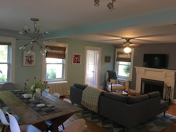 Sunny 3 br/2ba renovated house with large fenced in yard and screened in porch for rent. Walking distance to downtown, the Rivanna Trail, Northeast Park (with playground) and Burnley Moran Elementary. Basement and shed for storage. Upstairs are 2 bedrooms, the primary bedroom is large enough for a king size bed and has two closets. The upstairs bath has a large tiled shower and tub. Downstairs on the main level is an open living and dining space, a large kitchen with granite counters and stainless steel appliances and laundry. There is also another bedroom and renovated bathroom. Off of the kitchen you will find a screened in porch overlooking the large fenced in yard. Hardwood floors throughout the house and a working, wood burning fireplace. Dogs are ok with deposit. Open to shorter lease terms. (Note that this is NOT a furnished rental) Renter responsible for all utilities. No smoking allowed on premises. 3 off street parking spaces. Pets ok with deposit. Lease term length is flexible - can be shorter.