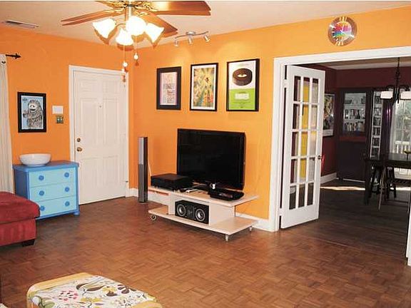 Charming updated vintage style home features wood floors, french doors, and lots of windows for natural light. The house flows from living to dining and kitchen for easy entertaining. Located near downtown and Mueller area, great for close in commute. Access the large deck through french doors and enjoy the beautiful lot. Front yard is Xeriscaped for easy care. This is a rare find in a wonderful quiet neighborhood.