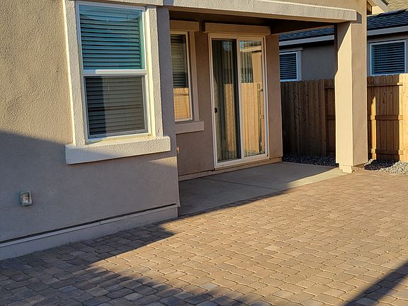 A large paver's patio in the backyard. Beautiful mountain views.