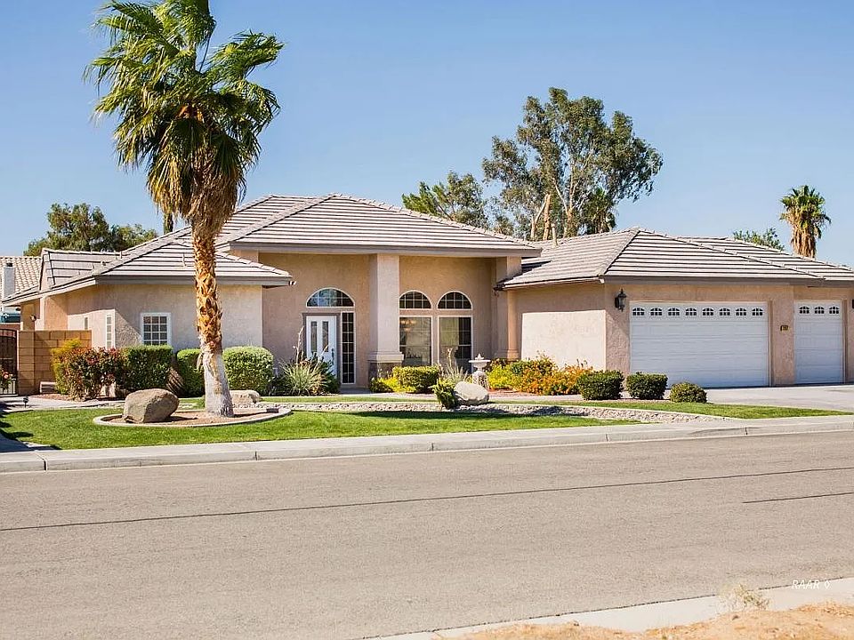 Outdoor Oasis: Enjoy a massive covered patio with integrated ceiling fans, surrounded by a private block wall and wrought iron gates.