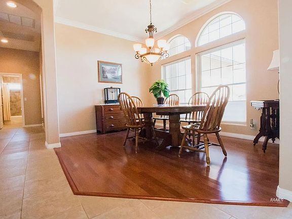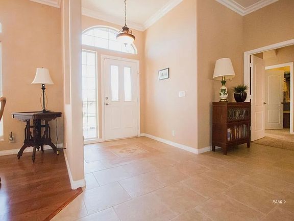 Grand Entry: Soaring 10ft ceilings and custom crown molding create an immediate sense of scale and elegance in the formal dining and living areas.