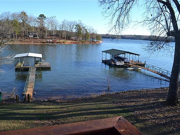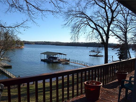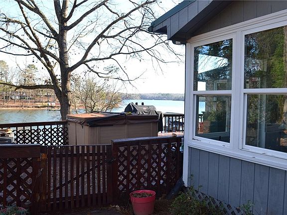 If being close to the water with a big view and deep water is important then this is the lake house to buy.Awesome views and deep water on the Tugaloo. The water view and gentle walk to the covered dock is outstanding! Two detached garages with automatic overhead doors for storing boat and lake toys or for work shop. Two fireplaces one up and one downstairs. All season room with great views of the lake. Several mature oak trees on lake side provide shade in the summer and are limbed high enough to not impede your view of the sparkling water. Community boat landing next door or community lot for putting in or taking out your boat! Conveniently located off exit 4 and I-85.