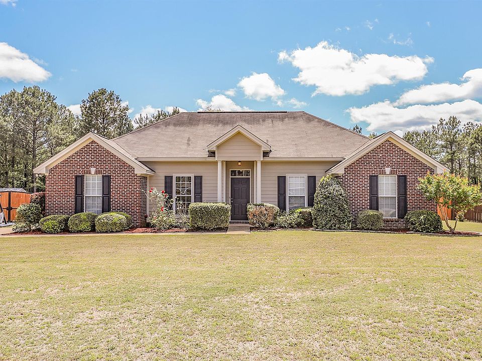 Welcome to 1207 Conestoga Wagon Trail, Prattville. Let's take a look around this 4 bedroom, 2 bath home. Great curb appeal. Inside we are greeted in the foyer by hard wood floors that lead into the formal dining room on the left and straight ahead in the large family room with fireplace. A brightly lit, white kitchen and breakfast room are to the left. Lots of cabinets and counter space for storage and work space. White appliances. Tile floors. The Master Suite is on this side of the home. Room for a king sized bed. Walk in closet. 2 sinks, tile shower, soaking tub and more storage in the master bath. A full size laundry room is situated right by the back door. The kid's/guest rooms are on the other side of the house. 3 bedrooms and a hall bath over here. The hall bath has 2 sinks. How cool is that with multiple children getting ready for bed or school? HUGE back yard. Nice patio space for watching the kids play or grilling and chilling with friends. The lot is almost an acre. Storage building in the back remains. Only 4 miles to Prattville High School. Very convenient to I65 while a little off the beaten path. Come see us! Call your agent first.