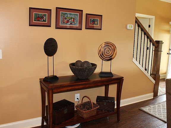 Current owner has added extras in & out to make this home a showplace. Crown molding in Great Room & Bedroom , hardwood from foyer thru dining room, kitchen & great room. Breakfast Bar w/room for five! Master on ground floor w/sitting area. 3 bedrooms upstairs with 2nd living area & bath. Backyard Oasis w/above ground pool with deck, sitting area with firepit, sprinkler system added & covered back porch for grilling. Storage bldg. stays! Underground utilities, sidewalk & cul-de-sac lot!