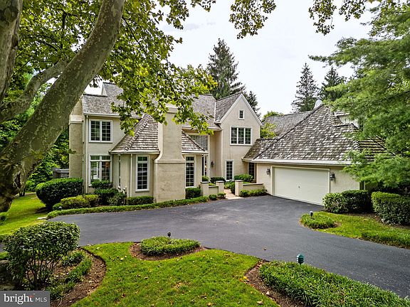 Nestled in the highly desirable Denbigh community, this stunning 4-bedroom, 3.5-bathroom single-family home offers the perfect blend of suburban tranquility and urban convenience, with advantages of both Wayne and Upper Merion. The meticulous landscaping, maintained by the homeowners' association, enhances the home's curb appeal. Walk through double doors into an impressive two-story foyer that sets the tone for the rest of the house. The inviting carpeted living room complete with a cozy fireplace. The open floor plan includes a dining room with floor-to-ceiling windows and French doors that lead to a recently updated, large private deck—ideal for peaceful outdoor relaxation. The heart of the home is the light-filled kitchen with Viking stainless steel appliances, breakfast room, and family room combination, which boasts hardwood floors and yet another wood-burning fireplace and a walk out through the sliding doors to the patio. Spacious office features another fireplace, wall-to-wall windows, and built-in shelving, perfect for displaying books, photos, or collectibles. The finished lower level, with new carpets, fresh paint, and updated lighting, offers a versatile space that includes a play area, family room, additional bedroom, full bathroom, gym, and a fully equipped kitchenette, making it perfect for guests or household help. The walk-out basement is bathed in natural light and opens to the serene backyard. Upstairs, the second-floor hallway gleams with hardwood floors, leading to the primary bedroom with ample storage, an ensuite bathroom featuring dual sinks, a walk-in closet, a soaking tub, and a separate shower. Two additional bedrooms share a full hallway bathroom. Outside, the neighborhood is perfect for strolls under mature trees, with nearby trails, dog-walking paths, and bike routes. The location is unbeatable, with proximity to Main Line entertainment, King of Prussia Mall, major routes, and more.