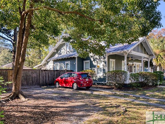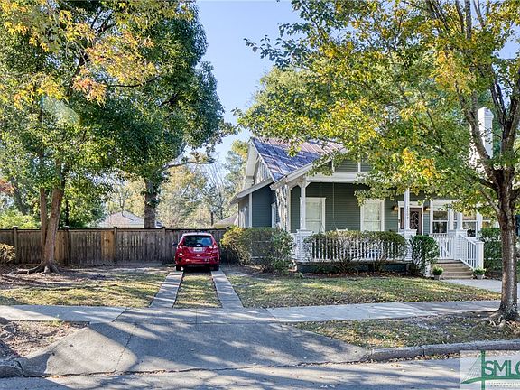 Sit on the front porch swing or rocking chair and relax. This adorable craftsman cottage is charming with 3 bedrooms and 3 full baths, a fourth bedroom/den/library, hardwood floors, lots of natural light & screened porch. House sits on three lots with a privacy fenced "L" shaped yard and room for off-street parking. Being sold AS IS. Just 3 blocks from Daffin Park.
