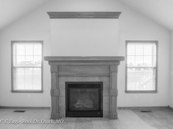 1207 E. Eagle Rock Dr. Ozark, MO 65721. Curb appeal like crazy! This is a must see all brick and stone home located on a corner lot in a family friendly subdivision. The buyer may choose a new paint color from builders samples for a complete paint inside paint job! The living room is spacious with vaulted ceiling and a gorgeous fireplace. The large master bedroom has tray ceilings, and a great master bath with his and her closets, double sinks, and a soaker tub. Living room and bedrooms have carpet and this is tile through-out the rest of the home. (Measurements are per plan and not always accurate. Buyer to do their own due diligence.)
