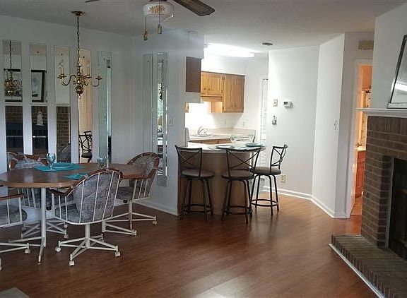 Two bedroom 2 bath first floor end unit with privacy! Freshly painted, wood laminate floors. Living room dining room combo with fireplace. Enjoy your favorite beverage on your very private patio or relax by the pool after a day at the beach.