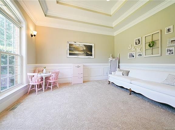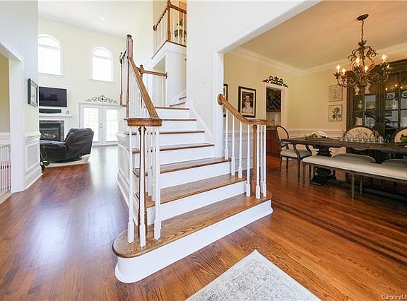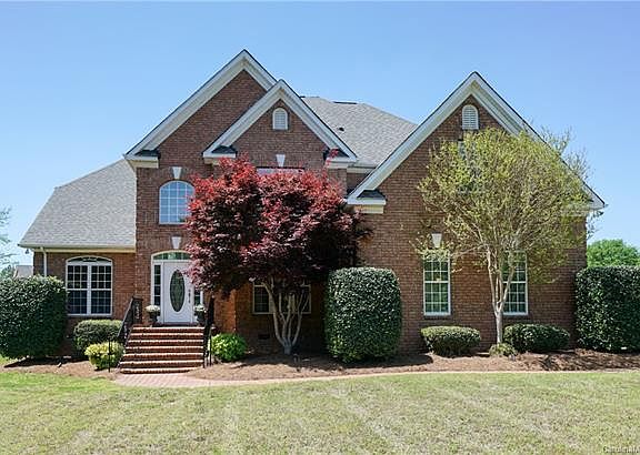 Amazing full brick home sitting on just shy of an acre! You're welcomed to this home with a two-story foyer and grand staircase. Hardwood flooring and elegant crown molding accent majority of main level. To the left of entrance is formal living room with wainscoting and trey ceiling and right is formal dining also with wainscoting and a chandelier. Two-story great room hosts gas log fireplace and leads out to the back patio. This room flows to breakfast area and kitchen seamlessly, a perfect space to entertain. Large windows throughout the home allow in tons of natural light! Master bedroom has carpet flooring, trey ceiling with chandelier and gorgeous bay window. Master bath features tile and glass stand alone shower and tile surround garden tub. With two vanity spaces there is plenty of space to get ready for your day. Formal office upstairs allows privacy when you need it and is complete with gas fireplace. Spacious yard is great for play or entertaining!