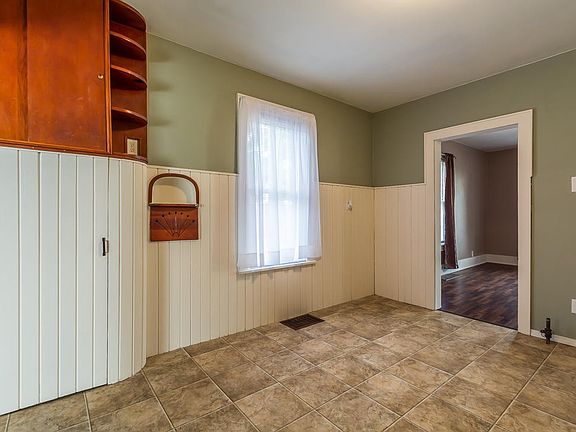 This home has 3 rooms that are bedrooms but only 1 has a closet. The attic has pull down steps but is finished. The bathroom is all new plus fresh paint & flooring throughout. Back porch has been finished and makes great 3 season room.Nice front deck and a patio in back made from stepping stones. Privacy fence and detached garage.