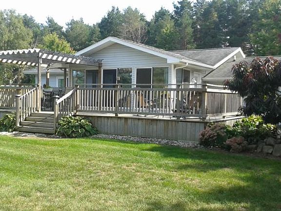OPEN HOUSE SATURDAY NOV 19TH 12:00 TO 1:30 PM. SEE YOU THERE. Ranch home located next to Arrowhead Golf Course. Home features 2 bedrooms, 2 full baths, family room, sun room, first floor laundry, basement and large deck with hot tub. Cathedral ceilings, walk-in closets, jetted tub and a newer 1800 sf foot pole barn with cement drive to the road, 2 overhead 12 ft doors with openers. Beautiful grounds with trees, flowers, picnic area and a small rock pond. Includes all appliances. Immediate possession. Room sizes include living room 18 x 16, family room 23 x 12, sun room 12 x 18, kitchen 9 x 10, dining room 10 x 10 and bedrooms are 12 x 12 and 12 x 10.
