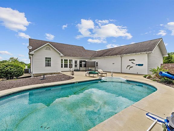 Welcome to this 4 bed (could be 6) 3 bath home in the desirable St. Francois Hills neighborhood in the Farmington School District! With over 3600 sq ft of living space, this home has it all. The living/dining area has wall of windows that overlook the inground pool area that has a gazebo and tv. There's also electric for a hot tub. The updated kitchen has solid surface counters w/a breakfast bar and center island. New appliances, light fixtures, and flooring complete the kitchen, dining, and breakfast nook. The divided floor plan has the master en suite w/tray ceiling on one side w/laundry room and the 3 car garage, while the opposite end has addt'l bedrooms and full bath. Main floor bathrooms have hands free toilets! The lower level has a kitchenette, additional bedroom, two additional rooms that are sleeping areas, office, game room, or whatever you choose w/a full bath and storage. Seller is offering a $10,000 flooring credit to update the lower level flooring to your choosing.