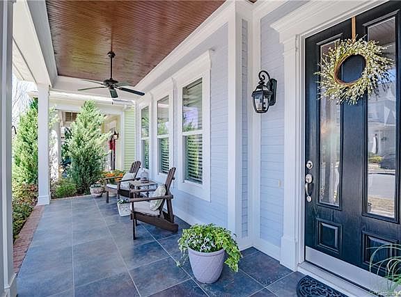 Charleston inspired Cunnane built home w/ quality craftsmanship located on a quiet street. Walk to downtown Davidson, Cornelius, restaurants & shops, w/ easy access to I-77. Enjoy the beautiful Carolina weather on the large rocking chair front porch w/ ceiling fan. The side patio & front porch both feature tile flooring w/ brick edging. Open floor plan w/ 10' soaring ceilings & lots of windows for natural sunlight. The spacious kitchen has upgraded 42" cabinets, tile backsplash, granite countertops, under cabinet lighting, a kitchen island & stainless steel appliances. The master suite is located on the main level & features crown molding & a large walk-in closet. The master bath is spacious w/ a beautifully tiled walk-in shower. Upgraded cabinets & granite countertops are featured in the powder room. Upstairs has two large bedrooms, a bonus room and huge walk-in storage room. The community features a beautiful pool, dog park, walking trails, recreation area, multiple green spaces.