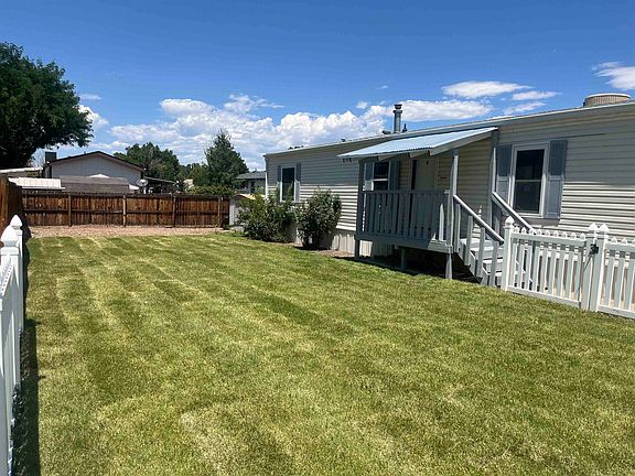 Charming Fruita home with the white picket fence is ready for you to move on in. This two bedroom two bath home has just received a TON of beautiful updates inside and out. New sod in the fenced in yard, new privacy fence, is all ready for your furry friends. There is an open area in the back of the yard for a patio, pool, garden, anything you want it to be, as well as a shed for additional storage. Watering is easy with the Automated sprinkler system. Inside you will find an all new stainless steal appliance suite, new counter tops and beautifully painted cabinets. Upgraded windows, and vaulted ceilings run throughout the home. Primary bathroom updates. So many things have been tastefully done you must come see for yourself. Home has been gone through top to bottom and repairs made based off of inspection report.