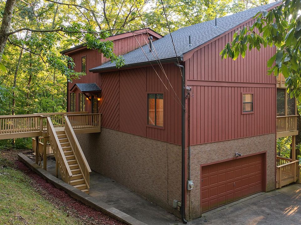 Amazing location!!1.5 miles to 65 and Concord and nestled amongst the trees with absolute privacy! Easy commute to anywhere and then get home and relax in your wooded paradise! Over 1000 square feet of deck space to enjoy your surroundings including the 200 acre property it borders and the sunset that sets every night right behind the hills seen from this lovely home! Inside is open and updated with a large living room with a fireplace asking you to get cozy! The kitchen boasts a huge quartz island and a gas range with a view out to the woods! Separate office on the main floor perfect for working from home! Upstairs is the huge bonus room and the private primary suite! The secondary bedrooms are separated on the first floor and have their own patios overlooking all of the trees. This house is SPECIAL and in an unbeatable location! Brand new roof! Ready to move in! No HOA! Come check it out!