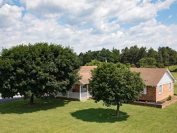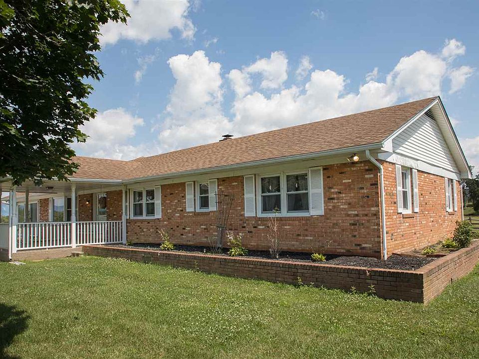 Comfortable brick ranch home featuring 3-4 bedrooms, 2 full baths, multiple living rooms & nice sun rooms/decks and enclosed rear porch. A large eat in kitchen with white cabinets and appliances is conveniently located off a living room with wood stove and propane heater, a large wash room complete with cabinetry & a sink and a beautiful finished Florida sun room with windows taking in the pasture fields and mountains. home features some recent updates including replaced carpet, vinyl tilt in windows and LVP. A detached 25x30 over sized & heated single car garage/ workshop is a great bonus to the home. Situated on .619 of an acre this home has all the features you need, close to town yet a scenic country setting.