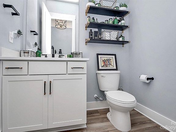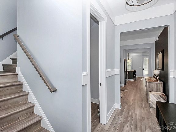 Amazing home, only 10 miles from downtown Charlotte and minutes away from downtown Matthews. Tennyson is a beautiful, thriving and desirable community. This home has hardie board siding, 10 ft ceilings, boasts an open floorplan, chair rail crown molding in the foyer, luxury vinyl plank flooring, quartz countertops and a gourmet kitchen with stainless-steel appliances. Beautiful matte black and upgraded fixtures throughout the home. Sellers spared no expense on additional additions, which include custom paint throughout the home and 300 sf of pavers added in the rear to accommodate additional seating. A retractable fandelier, rainfall showerhead with removable handle and floating shelves have all been added. Upgraded kitchen faucet that matches perfectly with the matte black fixtures and hardware. This home also comes with blinds. The community includes over two miles of walking trails, a pond, a playground and a dog park. Don't miss out on this opportunity to own this beautiful home.