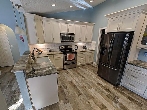 3/2 Open concept w/ split bedroom floor plan. Large kitchen w/ leathered finish granite countertops, new cabinets and large farmhouse sink. Wood-grain tile flooring. Vaulted knockdown ceilings. Vertical garden. Screen enclosed salt water pool. Roof replaced 2015. Water heater replaced 2017.
