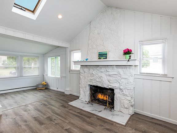 - RoomLivingRoomFeatures: Skylight, Fireplace - Gas, TRY/VLT/CATH, Floor - Linoleum/Vinyl, Ceilings - Beamed