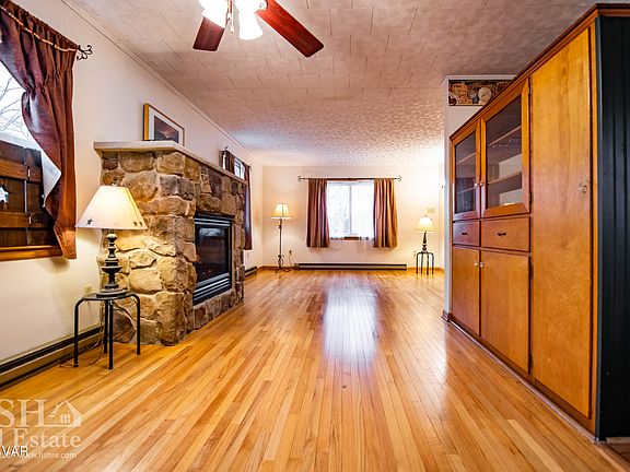 Solid multi-story home with so much to offer including a stream in the lower back yard! This home has a lot of room to spread out. Inside you will find fresh paint and newly refinished wood floors. The features are 3BR, 2 bath, office, four seasons room and finished basement. The fireplace in the living room adds to the warmth of this home. There is an attached garage and carport. In back there is an oversized deck, shed, lean-to and a peaceful yard. All measurements and square footage are approximate. Please verify for your own use.