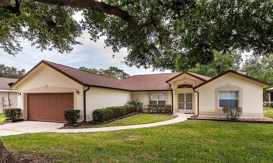 Excellent opportunity to own a contemporary style pool home on lakefront property in the well-established North Ridge community. THE ROOF WAS REPLACED IN 2021. Home sits on a ½ acre sloping lot dotted with majestic trees. Step inside to space designed for formal living/dining but is perfectly versatile to arrange as you see fit. Notice here the highly polished bamboo flooring – continues throughout much of the home. Walking back to the heart of the home you will find a roomy eat-in kitchen that’s open to a spacious family room. Kitchen boasts plenty of counter and cabinet space, breakfast bar, closet pantry, eat-in nook and direct access to the covered lanai and pool area. Both the kitchen and family room have large picture windows that provide pool and deck views. Split bedroom plan with master suite on one side (off the front entry) – ideal for privacy. Master bedroom is large enough for a sitting area or private desk, sliding doors to the covered lanai, and an ensuite bath that includes an expansive, dual sink vanity, soaker tub and separate shower. You’ll also love the sizable walk-in closet. Secondary bedrooms/bath are tucked off the hallway from the family room. You’ll appreciate having an interior laundry room, too. The big reason you’ll want to own this home is all that you have out back – pristine heated pool, large deck w/pergola and covered lanai overlooking a treed yard and Jacks Lake. Multiple areas for enjoyment, either in the sun or in a shady spot. The backyard looks like a private park – the perfect place for a picnic lakeside! Overall great location – Only a mile to SR 27 and your Publix as well as SR 50 – perfectly positioned to provide easy access to shopping, dining, and major roads to whisk you anywhere you need to get to in Central Florida. This home had been lovingly cared for by the original owner for decades. Now it’s time for you to make some new memories. Come see all that makes this home so special!