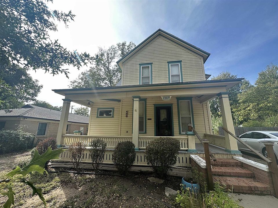 Own a piece of history! Built in 1900, this home is located in the heart of Riverside. The current owners have lovingly cared for the home for more than 50 years. After parking on the large 2-car off-street driveway, you will come into the home from the covered front porch, entering into the parlor / family room. You will immediately notice the tall ceilings and beautiful wood around the windows, doors, base trim, stairs, and stair railings. These stairs lead you up to 2 large bedrooms and 1 full bathroom. Back downstairs as you enter into the rest of the home from the parlor, you come into the dining room with a quaint sitting room / sunroom tucked around the corner. A second room next to the dining area was considered the library containing 2 walls full of built-in wood shelves. Off this room is the second full bath. Further on into the heart of the home, you enter into the kitchen with lots of cabinet space and plenty of additional room for another table and chairs. Through the kitchen into the rear of the home you arrive in a large yet cozy living room with a wood burning fireplace within a very nice stone hearth. The stairs here lead down to the basement into another living room with yet another wood burning fireplace set within red brick. The basement includes the utility room which has washer / dryer hookups, HVAC, and water heater. There is also a bonus room with a day-light window. Going back up and out the rear of the home you come out onto the back deck and into the back yard, fenced and private. The garage out back has great outside parking availability and is a large, oversized 2-car with a huge attached workshop with separate door entrance. The attic space in the garage contains an intimate workspace and other room for storage.