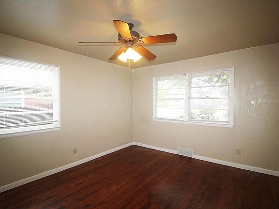 This single family home is located in the Highland View addition and is in the Nichols Hills school district. Three bedroom, one bath, one car garage with approximately 1,125 square feet was built in 1958. This large and open floor plan home has the original hard wood flooring, brand new EVERYTHING, additional built in cabinets & drawers, central heat & air, dine in kitchen, fresh paint in and outside of the home, and has a chain link fenced in back yard. The country style front porch makes for great outdoors enjoyment. Each bedroom is above the average size and has large closet space. The garage has the washer and dryer connectioins and is accessed through the kitchen. Security deposit is equivalent to one month rent and pet friendly with a non refundable pet fee per pet. For additional information or to arrange an appointment to tour the home please call today.