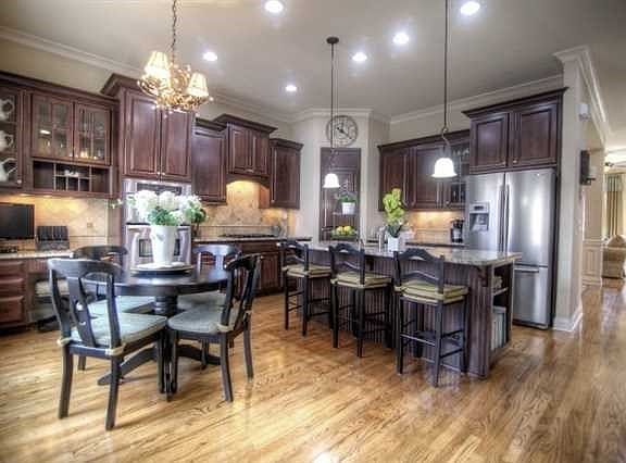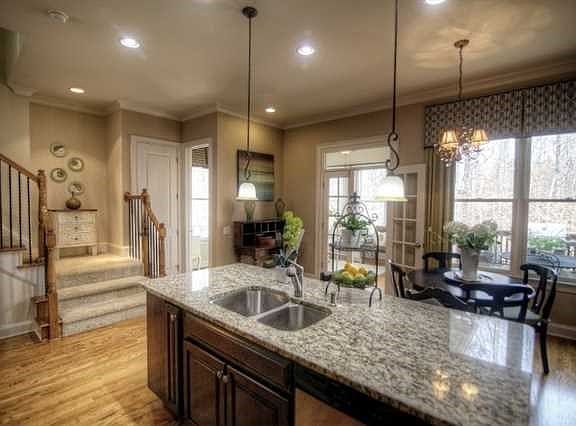 Beautiful End Unit All Brick 3 Bdrm/3 1/2 Bath Open Floorplan Townhome with Covered Front Porch, Finished Sunroom and Deck overlooking green space. Upscale Kitchen with Custom Cabinetry, Stainless Appliances & Granite. Formal Dining and Living/Family Room with Custom Built-ins and Fireplace. 10' Ceilings and Hardwoods on Main. Master Retreat includes Upgraded Tile, Jetted Tub and Oversized Shower. Finished Lower level makes a great Media/Rec Room with Built-in Bar, Custom Cabinetry and Full Bath (Could be 4th Bedroom) Gated Community with Resort Style Amenities