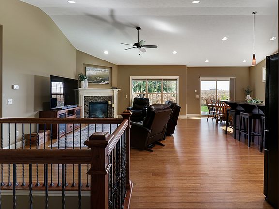 Beautiful RANCH home with 4 bedrooms, 3 1/2 baths, spacious three car garage and no backyard neighbors in lovely Sapphire Lake subdivision. Open floor plan allows for easy entertaining in the custom kitchen including large walk in pantry, island with bar height seating for 4, leathered granite countertops and hardwood bamboo flooring! Spacious main bedroom with ensuite including double sinks, tiled walk-in shower and large walk in closet. The other first floor bedroom has a full bath and could be considered a second primary bedroom. Keep everything organized with the built in drop zone laundry room as you come in from the three car garage. The basement has been professionally finished by Trunk Bay with 2 more LARGE bedrooms, full bathroom, & big family room with wet bar and built in shelves. Enjoy the peaceful backyard on the custom lighted stone patio professionally installed by GreenView Landscaping. NEW ROOF MAY 2023! Quality finishes throughout this home!