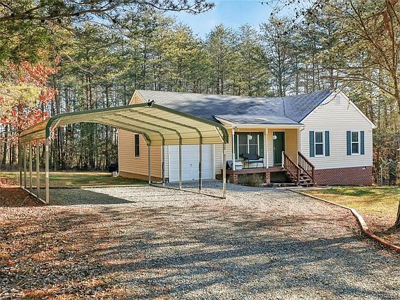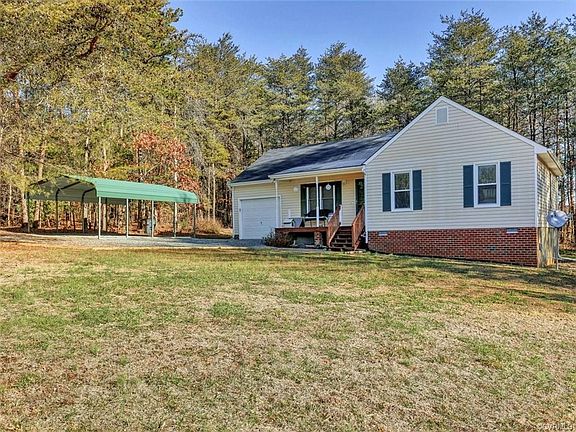 Rancher on 2 acres with a garage! This lovely vinyl sided rancher features a vaulted family room with built-in TV cabinet and propane fireplace. Open eat-in kitchen with pantry storage, all appliances including refrigerator and french doors leading to the rear deck. Primary bedroom with double closet and private full bath. Two additional bedrooms and hall bath with laundry closet. Attached garage w electric, lots of space for your car plus storage. All appliances convey including kitchen refrigerator, washer and dryer and the 2 garage refrigerators! Roof and HVAC replaced less than 5 years ago! Carport also conveys. Wide 2 acre lot w long driveway and lots of privacy. Family room has wood floors under carpet. Very convenient location in Mineral, less than 5 miles from 64/Gum Springs.