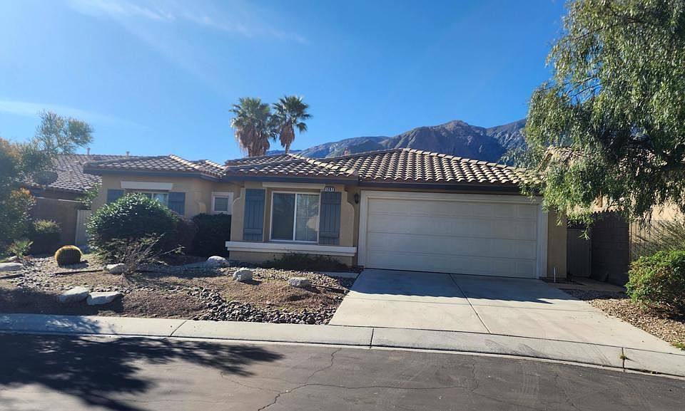 Priced to sell!!! Popular Verbena model has a large open floor plan great for entertaining.. Kitchen features granite counters, stainless appliances, a large pantry, center island with storage and a breakfast room area that opens to great room. A cozy gas log fireplace for the occasional cool winter evenings. Lots of windows allow for lots of light. Ceiling fans throughout. There is a formal dining room area. A separate laundry room has cabinets added. The great room opens up to the low maintenance backyard with patios and 2 patio covers. Block walls provide privacy and the SW orientation allows views of the spectacular San Jacinto Mountains. This home has a 2 car attached garage with some shelving. The HOA has super low dues and has more amenities than most featuring 3 pools and spas, tennis courts, basketball court, children's playground, covered BBQ area, roving patrol, and doggie bags on the green belts for your pets. We have a social club for those wanting to make connections in the community. Located off Palm Canyon close to the PS tram, shopping, restaurants, and entertainment.