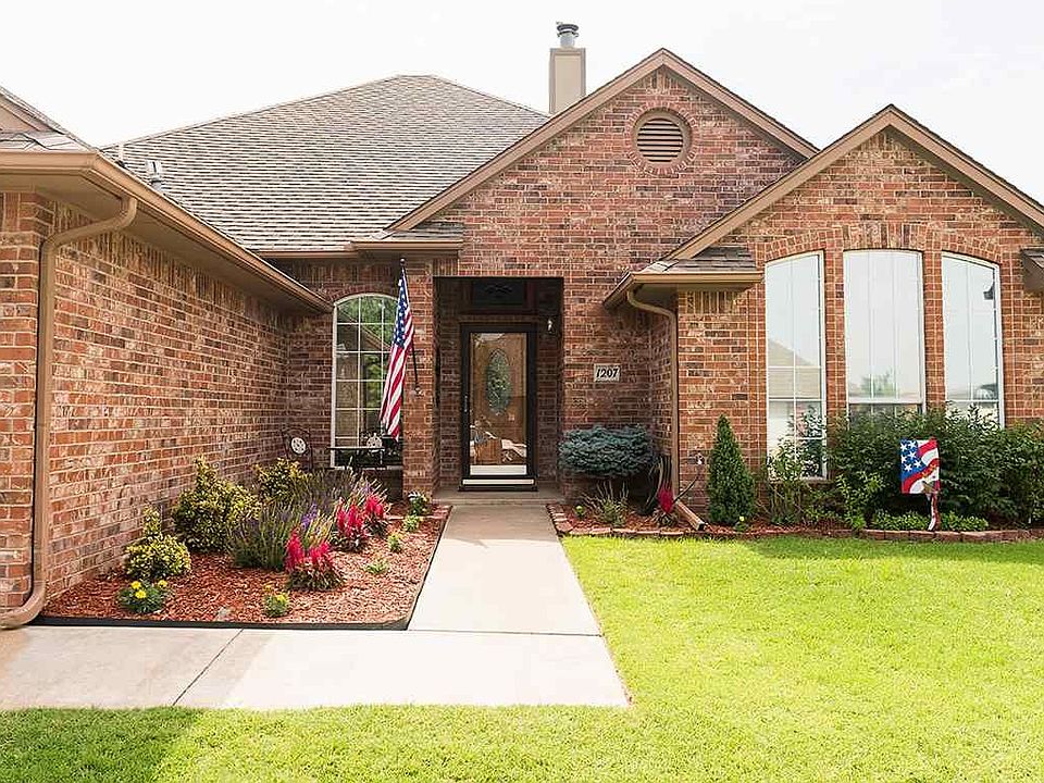 Say "WOW!" when you step into this well-maintained, spacious, absolutely PERFECT home for the summer, holidays and entertaining! Large, vaulted ceilings in the kitchen with granite countertops, loads of cabinet and counter space, and stainless steel appliances. The 10'x4' walk-in pantry is to die for! Feeding large families or gatherings is a breeze whether in the formal dining area, breakfast nook or eat up bar. The open living area is complete with a beautiful, tiled fireplace and a wall of windows looking out onto the covered patio and SALT WATER POOL!!! The master bedroom is spacious with french door access to the covered patio and pool, as well as, an ENORMOUS walk-in closet. The master bathroom has double vanities, a large tiled shower and a jetted tub. Bedrooms 2 and 3 are very nicely sized with large closets and share a lovely bathroom with double sinks and tiled shower. Keep clutter at bay in one of the many well-placed storage closets throughout and make use of all of the floored space in the attic. Outside, enjoy the fresh landscaping, salt water pool, covered patio, flower and vegetable gardens. In addition to the 2 car garage, there is an added concrete pad for additional driveway parking space. Recent updates include a brand new $4,000 upgraded A/C system, new pool liner and motor, stainless steel appliances, and so much more! Ask your agent for the seller's extensive List of Improvements! Owner/Agent -- Seller has an active OK real estate license.