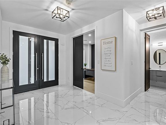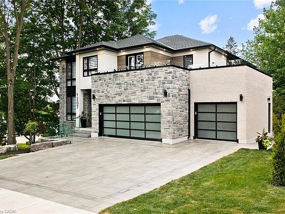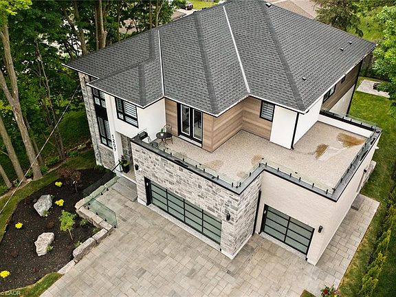 Welcome to this beautiful executive home in the quiet village of New Dundee. CUSTOM-BUILT HOME that EPITOMIZES LUXURY. The open concept floor plan features marble & engineered flooring throughout. A front den, powder room, & bright living room, w/ striking feature wall. The kitchen offers a large center island, QUARTZ countertops w/ waterfall feature, and backsplash. STAINLESS APPLIANCES, soft-close mechanisms, a dream walk-in pantry, & a convenient mudroom that provides access to the triple garage, boasting epoxy flooring, & a TANDEM DRIVE-THROUGH FEATURE. Double slider doors lead you to the COMPOSITE DECK, where you can relax and enjoy the serene views of Alder Lake in the background. Admire the GRAND SOLID WOOD STAIRCASE, adorned w/ open tread risers, GLASS SLAB ACCENT RAILINGS, & a stunning brick veneer backdrop that spans all three levels. The upper level offers three spacious bedrooms, each w/ its own walk-in closet & ensuite bathroom. Don't miss the private access through the loft, leading you to a ROOFTOP TERRACE. The primary bedroom, accessed through double doors boasts two walk-in closets, & a LUXURIOUS 5-PIECE ENSUITE w/ a floating tub & separate shower. The private access to your own primary balcony allows for INCREDIBLE VIEWS. The lower level has been thoughtfully arranged to include a full kitchen, two bedrooms (one currently serves as an office), a separate laundry area, & a full 3-piece bathroom. FULL WALKOUT w/ access to a stone patio, hot tub, & a fire pit area, all within a fully fenced lot. Just minutes away from all the conveniences.