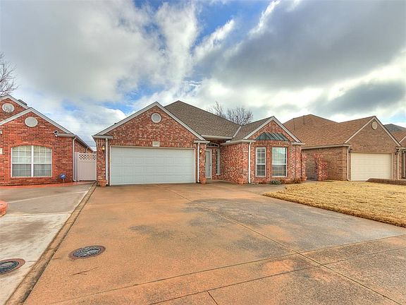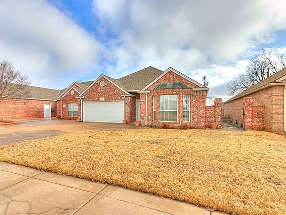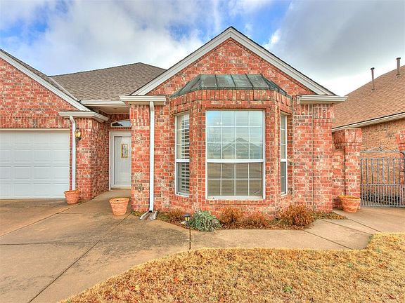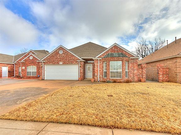 Cozy 2-bed, 2-bath in highly sought-after Regency Court addition. For Sale signs don't go up often in this 55+ community, so don't delay! Efficient floor plan with excellent use of space. Ease of living awaits. Primary bedroom is positioned comfortably away from the common space for optimal privacy. Nice bay window floods the room with natural light. Bay window has an attractive custom shutter window covering. Spacious primary bath offers a walk-in shower, double vanity, & double closets. Oversized living room is the ideal space for all to gather. The living room flows nicely to the breakfast nook and kitchen. Space-saving kitchen has tons of custom-built cabinet storage, ample countertop space, and updated appliances. Enjoy morning coffee on your east facing covered patio. Backyard is spacious enough for a small garden or room for a special little fur baby. Keep your vehicles protected from the harsh Oklahoma elements in the double-car garage. Neighborhood has centrally located mailboxes and a community walk-in storm shelter. Welcome home to Regency Court a wonderful place to call home.
