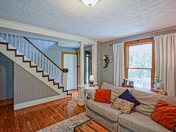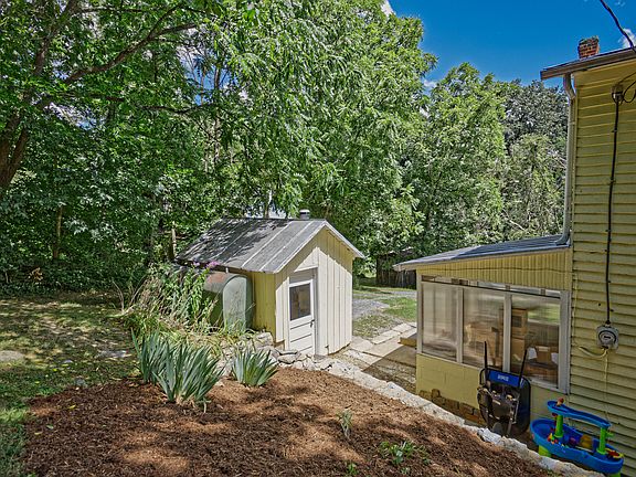 Charming restored farmhouse on .78 ac offers sweet country living in the 3-4 bedroom 2 bath home with original pine floors, updated bathrooms, and fresh paint. The front porch is the perfect spot for morning coffee or evening drinks. Fenced garden area, room for chickens fun tree house for the children and storage shed are a few outdoor amenities.