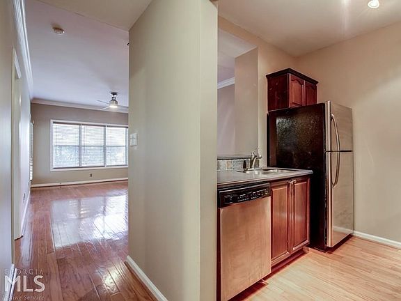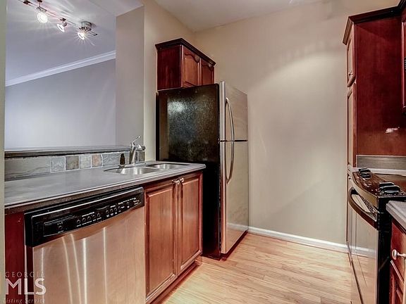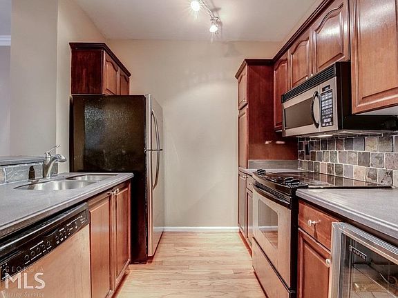 Move-in ready condo just a few short miles from new Braves stadium, restaurants, shopping, and easy access to the interstate! Kitchen has all stainless steel appliances, modern backsplash, breakfast bar, and wine refrigerator. Master bedroom has a large walk-in closet. The living room offers hardwood floors and leads you to a shaded patio. Gated community with pool and clubhouse. Also, its walking distance to the Chattahoochee River National Recreation Area.