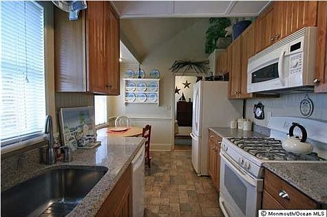 Fabulous water views! Immaculate Brick 2 bedroom ranch located across from beautiful Shark River that shows living room w/ vaulted ceiling,Eat-in Kit.w/granite counters,Hickory cabinets,and washer/dryer closet.Hard wood flrs, tiled bathrm,and relax in your year-round Florida room w/ wood-burning stove ( all windows)for breath taking views. Two private rear patios, backyard,and oversized 2 car garagew/elect.and auto-opener.Driveway and garage on side (K ST.)for easy access.Truly a Must See!