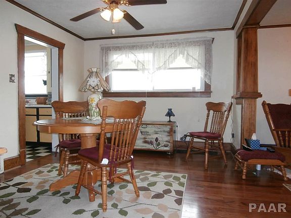 Terrific value is provided with this 2-3 bedroom home. Charming woodwork and hardwood floors grace the living and dining room. Many amenities include applianced kitchen, full basement with den room to expand, sizable enclosed front porch, relaxing deck with pergola cover. There is MORE! Past living quarters has been converted to a spacious man cave or hobby room attached to one stall garage. Updated electrical panel and new roof in 2017.